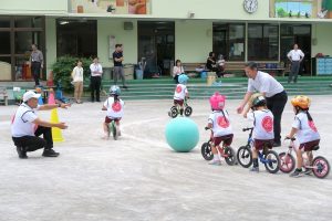 ペダルのない自転車をこぐことで操作方法と曲がり方を頭が理解。
